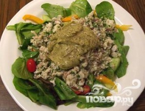 ![]() | После этого объедините готовую рыбу с кинзой и луком, тщательно перемешайте, затем отложите в сторону и займитесь приготовлением авокадо: в блендере смешайте 2 столовые ложки оливкового масла, 1 столовую ложку бальзамического уксуса, соль, перец, авокадо и немного воды до получения однородной массы. |
