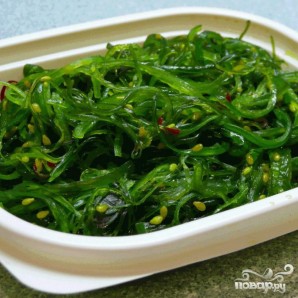 Нежное блюдо из кальмара, подаваемое с изысканным японским салатом Вакамэ.