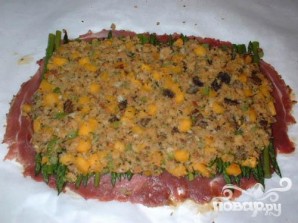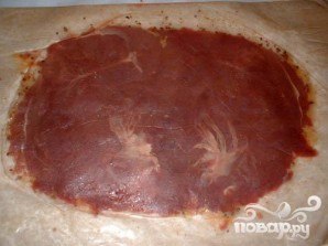 11. Оберните рулет в фольгу и запекайте в духовке при 180 градусах в течение 35-40 минут. Дайте остыть. | |