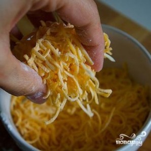 ![]() | 3. В отдельной миске соедините тертый сыр Чеддер с небольшой порцией муки. |
