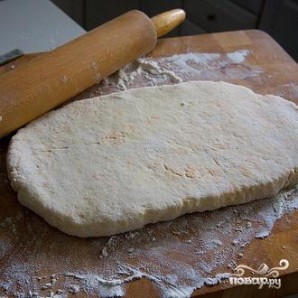 ![]() | 5. Выложите образовавшуюся массу на поверхность, присыпанную мукой, и тщательно замесите около 6 раз. Сформируйте из теста прямоугольник размером 12 на 25 см. |